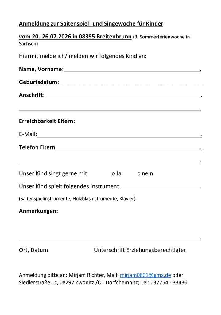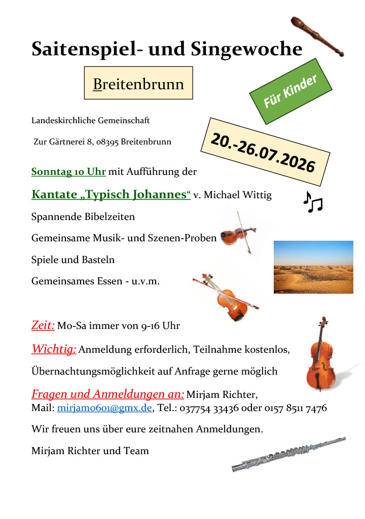 20. – 26.07.2026 – Saitenspiel- und Singewoche in Breitenbrunn, LKG
